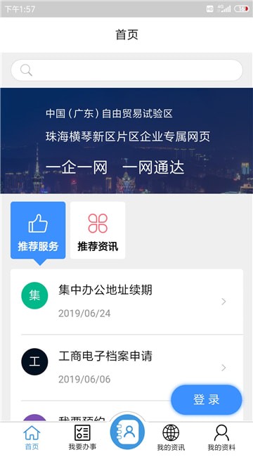 琴易办app是一款珠海市地区政府推出的政务服务办公管理软件,为本地市民朋友提供个性化、多元化,涉及到生活和企业各个方面的政务管理服务,用户可随时进入琴易办app进行各项事务的办理。“琴易办”——横琴新区统一政务服务APP,是横琴新区商务局依托广东省政务服务网,倾力打造的全区统一移动便企服务应用,旨在为横琴登记注册的企业提供个性化、多元化的涉企政务服务。“琴易办”包含首页、我要办事、我的资讯及我的资料四大核心板块,为企业提供工商电子档案申请、集中办公地址续期、综合服务中心预约及区各部门办事咨询等便企服务。琴易办app是一款专门为企业管理人员提供便捷服务的手机平台,用户只需在使用之前将个人企业信息进行录入,即可实时获取由平台提供的一系列便捷管理功能服务信息;其中有包括各类政务服务办理,可有效为用户企业管理提供更多合理选择,用户可通过平台轻松完成有关集中办公地址的续期以及工商电子档案申请等等,使用更加轻松便捷,用户可随时上线查看系统更新的最新行业资讯,掌握有关行业的最新动态及时就出现的相关问题作出调整,同时系统还将不定时推荐更改便捷管理服务以供选择,感兴趣的用户欢迎随时下载琴易办安卓版进行使用。