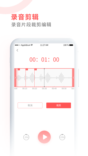 支持对音频文件进行截取,截取重要的部分,删掉不必要的部分;