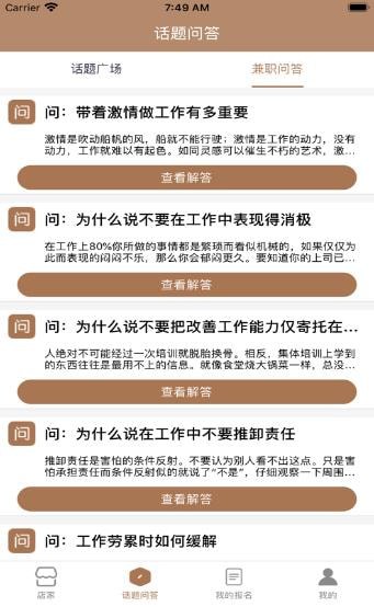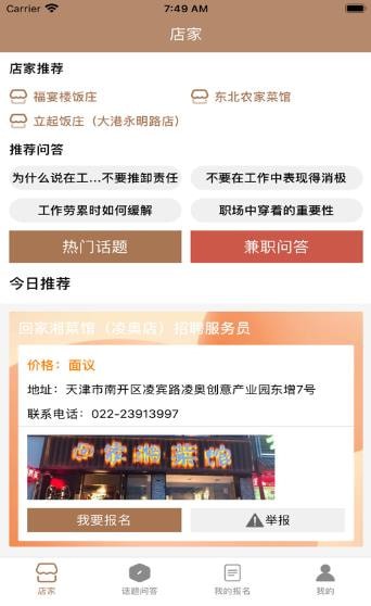 1.店家:这里有多样的兼职相关招聘店家,您可以报名相店商家所发布的招聘兼职信息,报名参与后可以在我的报名中查看!