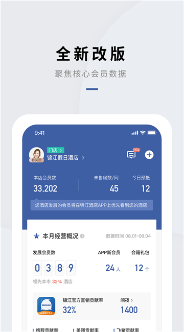 3、集成WeHotel大数据分析,高效、直观、全面的展示数据,为品牌和门店运营决策提供依据;