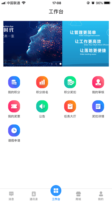 积分优选是一款企业员工积分管理软件,实行积分管理,让企业管理更简单、让工作更高效、让落地更健康,你可以在软件上看到我的积分情况,积分排名情况、积分奖扣规则,同时你还能在线进行请假申请,有需要的朋友快来单机8下载使用吧!