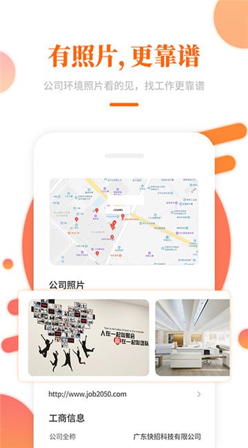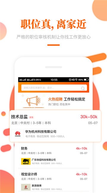 2、附近工作匹配:系统自动定位您的当前位置,并可按您的需求,找到周围1-5公里内的职位信息;