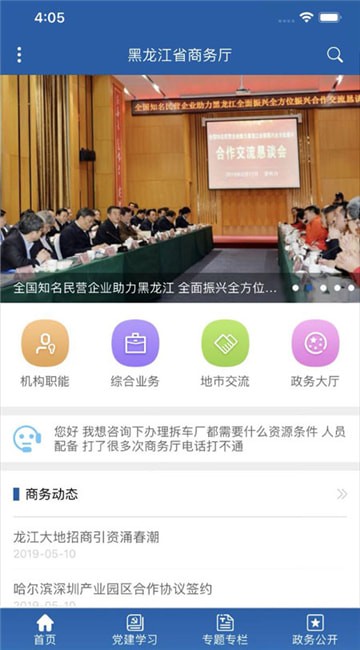 黑龙江商务厅是一款由黑龙江政府推出的信息发布平台,旨在为帮助用户更好的进行党建学习而打造的服务终端,是信息公开更加方便透明,不断提高政务厅办事质量和效率,是促进工作人员更好发展的重要软件。