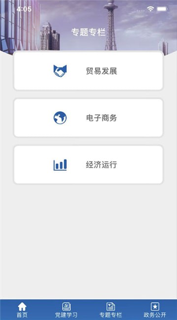 专题专栏下的贸易发展、电子商务、经济运行政策展示;