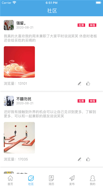 兴芒兼职包含各种兼职工作,用户可以挑选自己喜欢的兼职申请,还可以发布自己的需求,浏览用户发布的动态,完善简历开启工作之旅