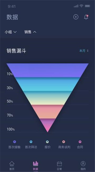 4.用户点击数据选项即可查看各销售小组的业绩情况