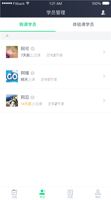 fitback教练是针对个人教练用户提供的专业教练服务app,在专业的学员管理和约课管理基础上,更是为健身教练用户对接专业的教练导师资源。