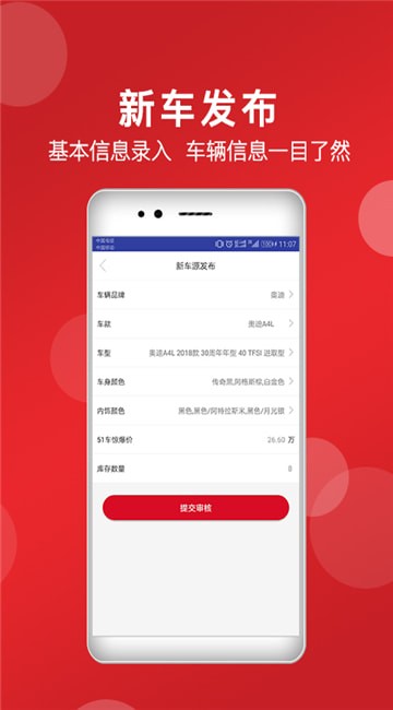 新车发布:进入之后用户就能选择需要进行上传的车型信息,制定参数价格就能发布;