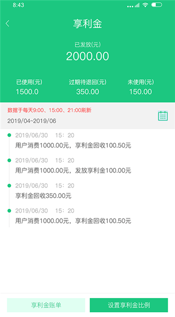 1.为商家提供营业额统计功能!更清晰直观的看到经营情况!