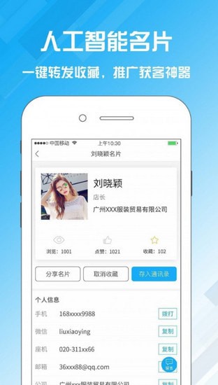 轻松管理人脉和客户,智能名片夹提升联络效率,店铺、企业、公司营销推广宣传必备。