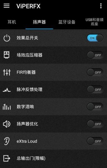 ViPER4Android FX是一款用于Android系统的全局音效驱动,主要用于给音频渲染各种各样的音频效果,包括回放增益、均衡器、脉冲反馈处理、场环绕、数字混响、动态系统和限幅器。