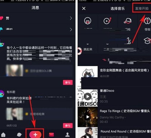 1)打开这个软件,点击正中间的【+】符号,接着点击右上角的【直接开拍】