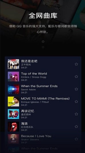 - 使用全民 K 歌的歌曲作为配乐时,支持自动从精彩部分开始播放。