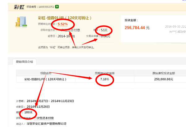 上图中投资者投资了256784.44元购买了这个转让的债权,那么他的收益是按照5.52%来计算的;