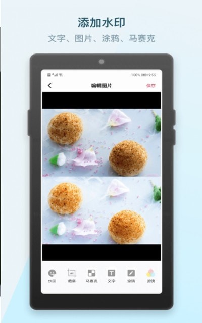 1、方便用户在照片上添加地理位置、贴纸水印等多种丰富的水印。同时支持裁剪图片、涂鸦等;