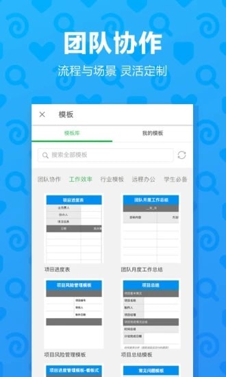 1、软件全面支持自定义团队模板,定制工作标准流程;