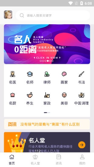 3、丰富的专业内容推荐,感兴趣的您可以直接查询相关内容,获取名人服务;