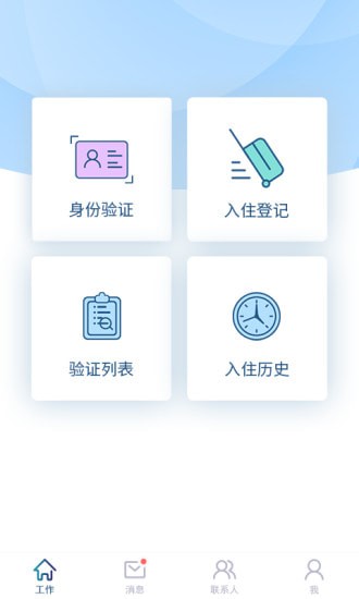 旅客入住是一款帮助民宿经营管理人员进行旅客登记管理的软件,对于需要入住的旅客,使用软件就可以对其进行身份登记和入住登记,轻轻松松就能进行管理,若需要入住的旅客没有身份证,可以进行无证身份验证,将旅客的所有信息填写完整,就可以快速进行提交,系统会将所有的登记记录保存下来,方便用户了解所有的登记详情,还可以在线进行聊天,与好友进行交流,查看公安部通知,可以及时查看最新发布的消息,用户点击自己头像,就可以快速查看自己的所有详细信息。