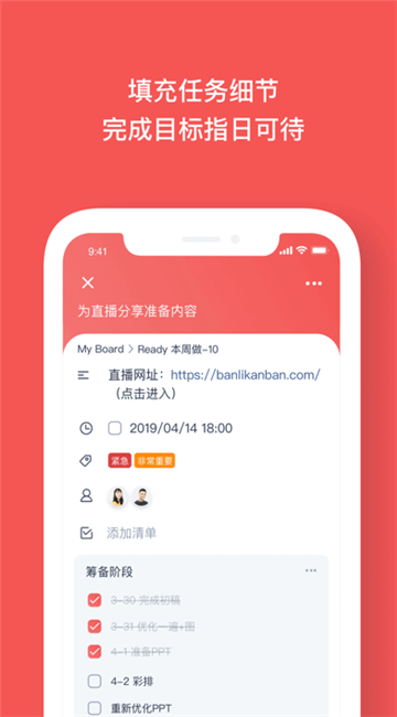 拖动卡片展示进度,设置到期时间,掐准deadpne。