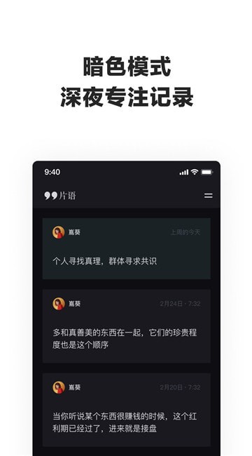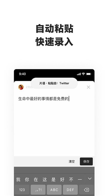 片语是一款碎片内容速记工具,快速且专注的记录你的灵感、媒体内容和备忘,并帮助你进行回顾,希望你会因它而重新喜欢上记录。