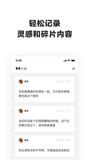 片语最新版是一款智能高效的灵感记录软件,在这里,你能随意记录生活中的各种碎片与美好事物,自定义编辑内容,实时备份防丢失,方便你随时记录保存,感兴趣的朋友就来下载体验吧!