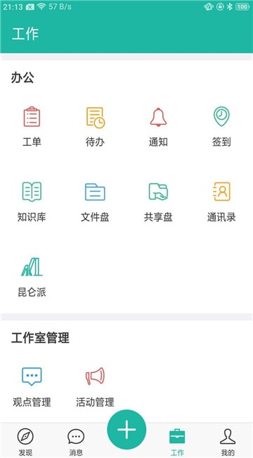 2、进入主页点击工作,全部办公功能可以直接找到
