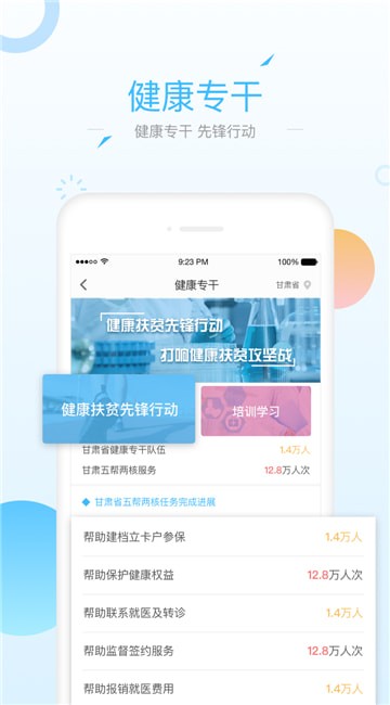各级卫计工作人员可以通过健康甘肃管理版最新版进行健康扶贫摸底调查、“一人一策”制定工作;