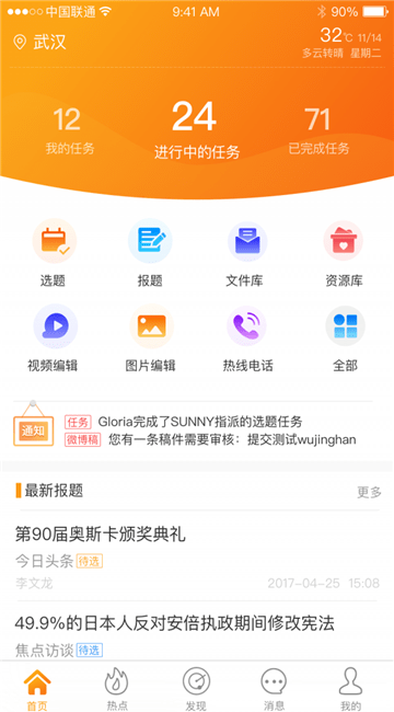【轻便】使用手机就能完成移动版的“中央厨房”式的生产工作,汇聚、选题、编稿、发布一站式搞定,更能利用平台共享获取更多资源素材、灵感!