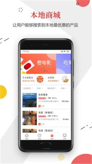 附近商家,通过地理位置信息查找附近商品,随时购买本地商品;