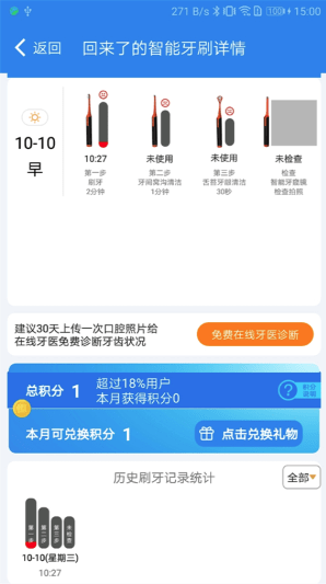 1.独创3分30秒3步1检查口腔整体清洁管理,帮您实时了解和管理口腔健康数据和个人口腔清洁历史情况;