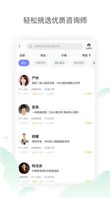 1、可以轻松挑选各种优质咨询导师,享受个性化咨询服务;