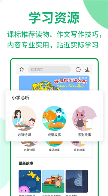 3.学习资源库,贴合小学生学习需求课文朗读、诗词讲解、课标推荐书目、作文与写作……优蓓通邀请国内、省内名师录制讲解,内容专业、实用,贴近实际学习。