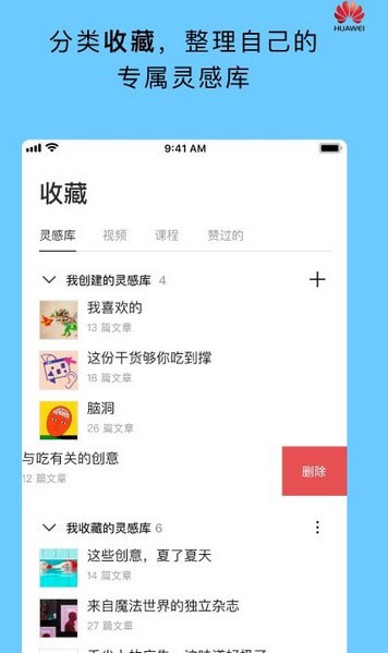 你可以把喜欢的文章和或创意内容收藏到自己的灵感库中,同时可以自定义灵感库的分类和名称,更方便地积累和整理灵感。通勤的碎片时间,就可以完成脑爆、提案时的预习收集。
