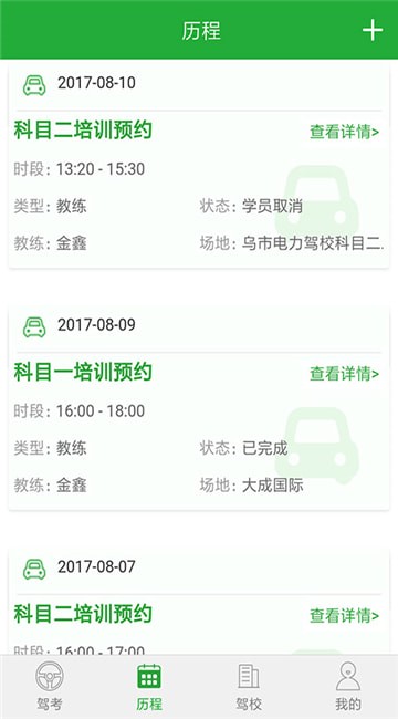 4、教练查询培训排班:在这里,可以清晰了解学员的预约安排;