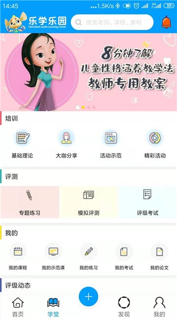乐学乐园app是一款帮助老师备课和科研的软件,在这里老师可以在线参与基础理论、大咖分享、活动示范、精彩活动等教学相关的培训,让你8分钟快速了解儿童性格涵养教学法,帮助老师更好的写教案,快来单机8下载使用吧!