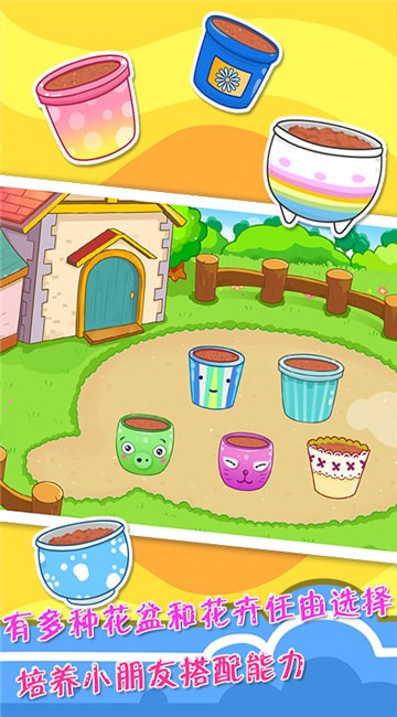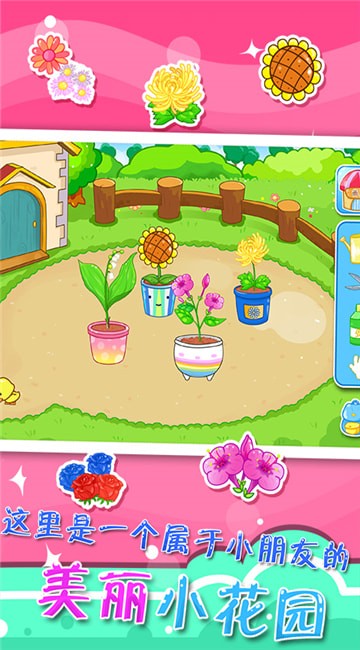 儿童宝宝植物乐园app是一款宝宝种植花的软件,主要为幼小的儿童研发推出,在应用中就能模仿现实中种花养花的场景,在应用中实现,并且所有为用户提供的功能都是简单的,每一位小朋友都能轻松的实现操作使用,简单方便。app为用户提供的花盆有很多,可以根据自己的需求,自行选择使用。选好花盆就能开始种植花了,多种类型的花可自由种植,并可以为他们加水、除草、除虫、施肥等操作,让花朵可以健康的长大。儿童宝宝植物乐园app还为用户提供了商店服务,可以将所有成熟的花朵放入仓库。并且在应用中还能获得金币奖励,金币可以享受更多的服务。