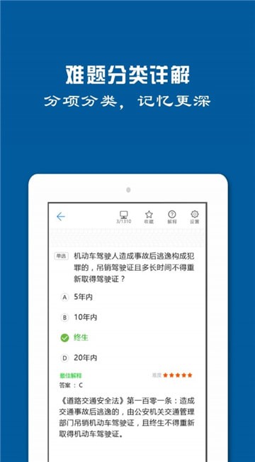 3、这里覆盖了A本、B本、C本的试题内容,满足各个驾考人员的学习需求;