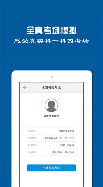 2、通过全真模拟考试,可以让用户感受展示的科目一、科目四考试;