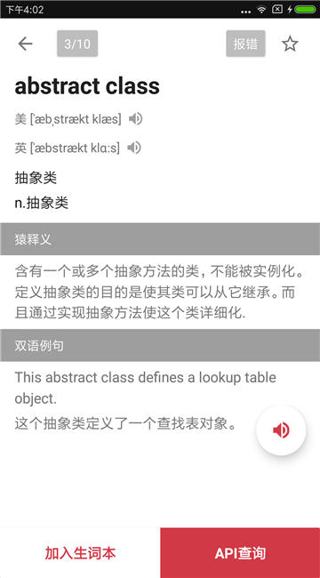 3、单词及时报错,学习词汇的时候发现词汇错误就可以直接纠错;