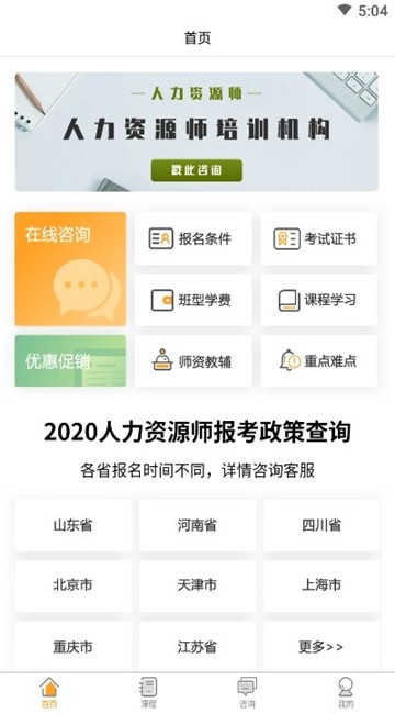 人力资源师网课免费版是一款手机备考学习软件,在这里为用户提供报名条件、考试证书、班型学费、课程学习、师资教辅、重点难点等查询服务,支持用户在线咨询,客服都会为用户一一解答,有需要的朋友快来单机8下载使用吧!