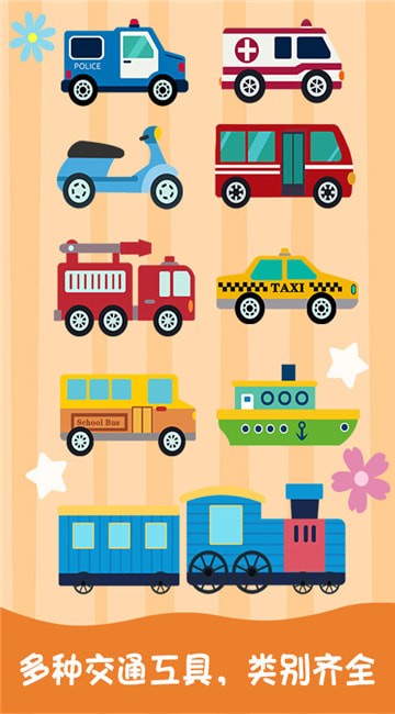 孩子可以在游戏之中认识多种交通工具,货车、火车、船舶、出租车、消防车等汽车这都有;