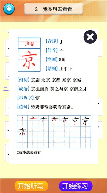 4、清晰展示汉字书写笔画,并且孩子可在田字格中进行汉字书写,熟悉书写顺序;