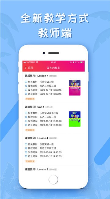支持背单词、同步测试、口语训练、听说等布置。