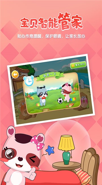7、趣味认读,每天10分钟,宝宝轻松认识1000个汉字,生动形象的彩尾熊会和你一起学习哦儿歌故事城堡——ABC英文歌、两只老虎、粉刷匠……节奏明快、通俗易懂、朗朗上口,帮助孩子矫正发音、积累词汇、认识事物、启迪心智。睡前故事,让宝宝爱上听故事,爱上讲故事家长贴心设置——家长设置休息时间、作息时间,保护孩子视力,有爱提醒,孩子易接受,防沉迷。