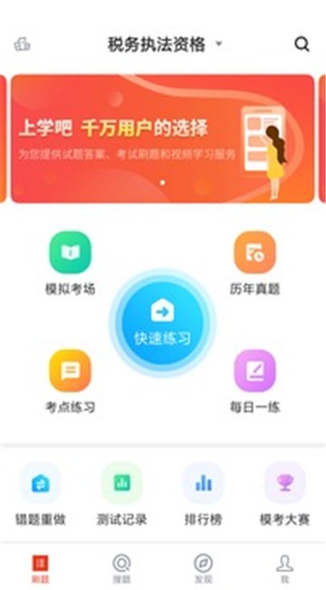 1、打开安装好的税务执法题库app即可进入首页界面