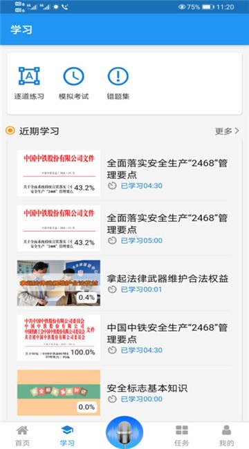 2、近期学习记录,每个人可以直接找到自己近期学过的全部安全培训课程;