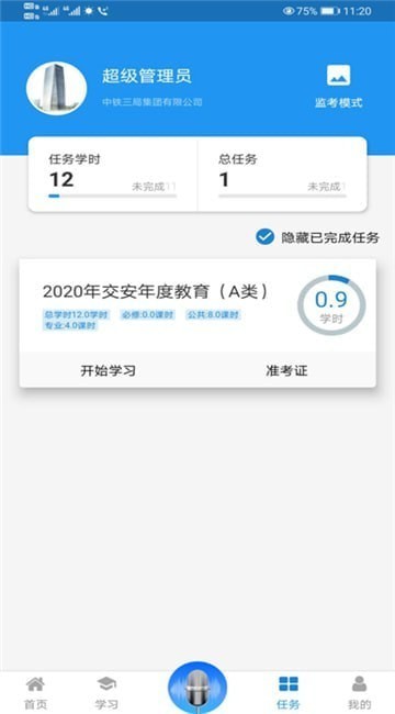 1、任务学时可以自动累计,总的培训任务实时查看;