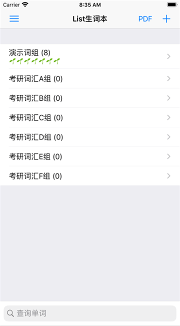 List生词本,分组归纳不会的词汇,把生词变熟词,致力于打造极简的生词词库。