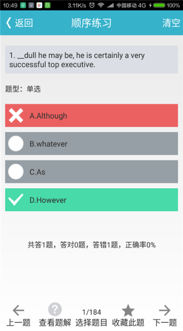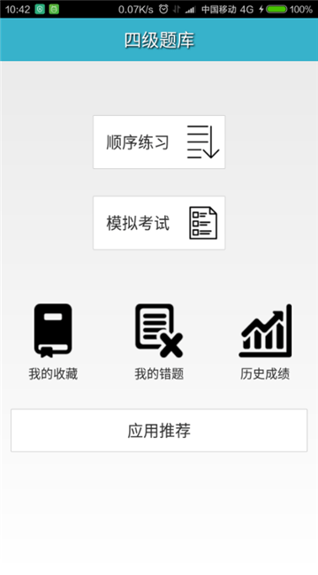 4、设置了许多不同的四级备考练习专区,有我的错题、顺序练习以及题目收藏中心等;