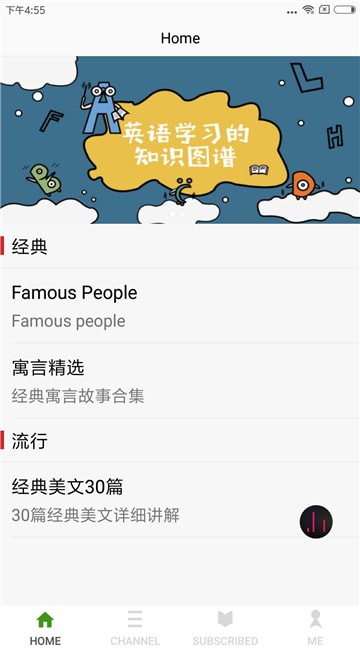 进入app的首页,可以一览app为用户提供了阅读内容